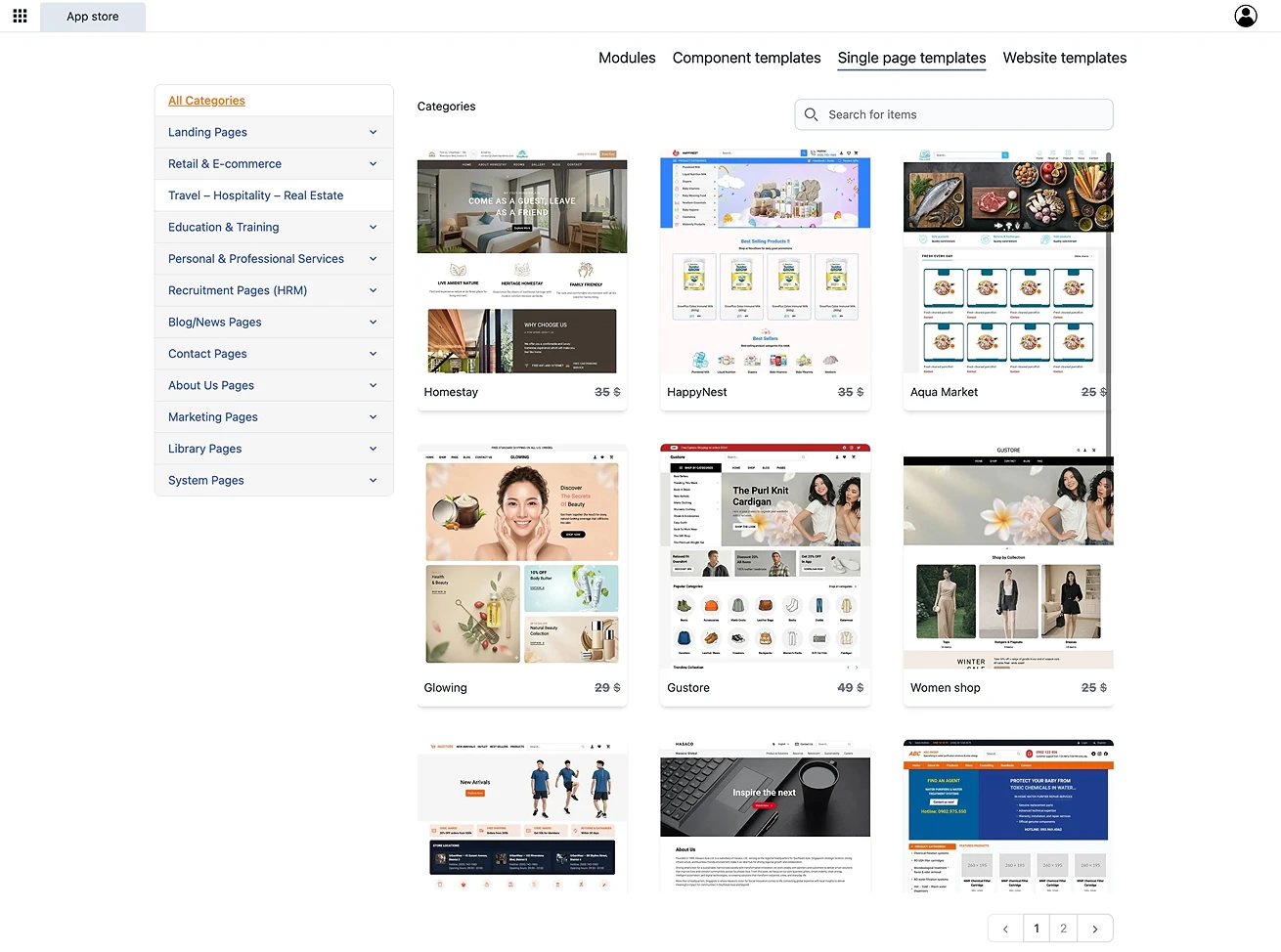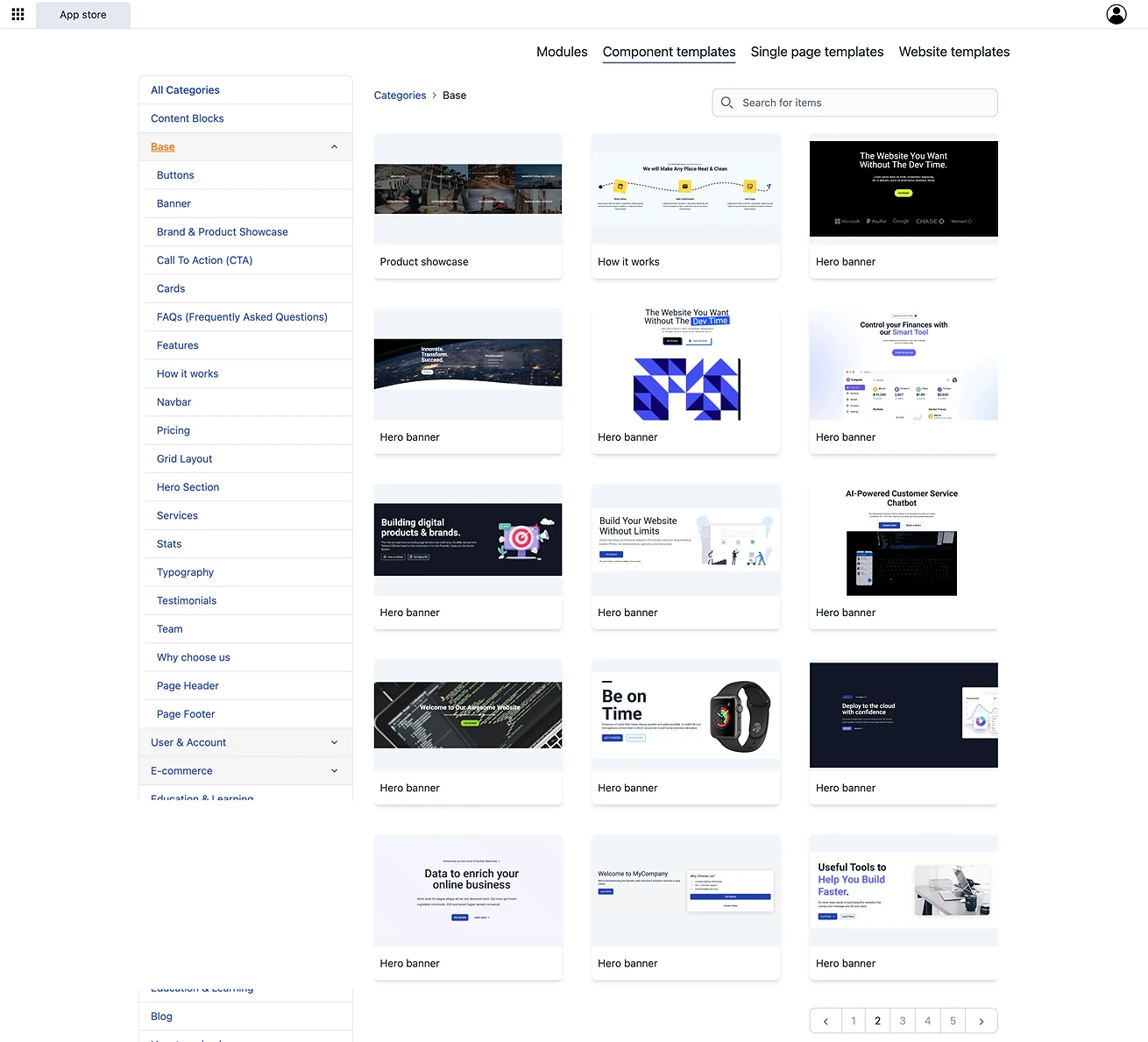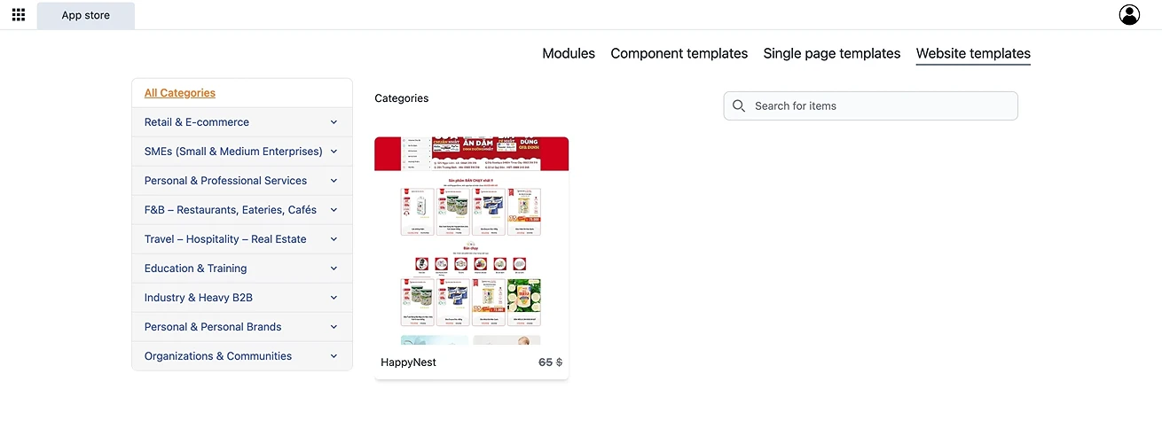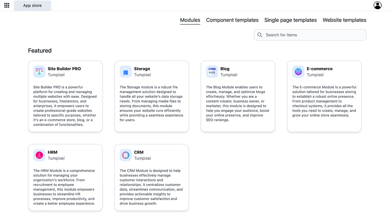 The App Store is where you build your website system using modules and templates.