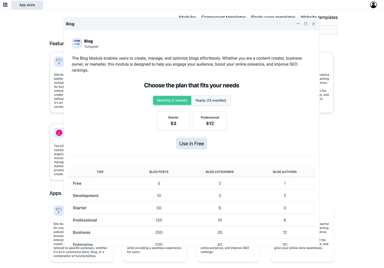 All modules include a Free plan